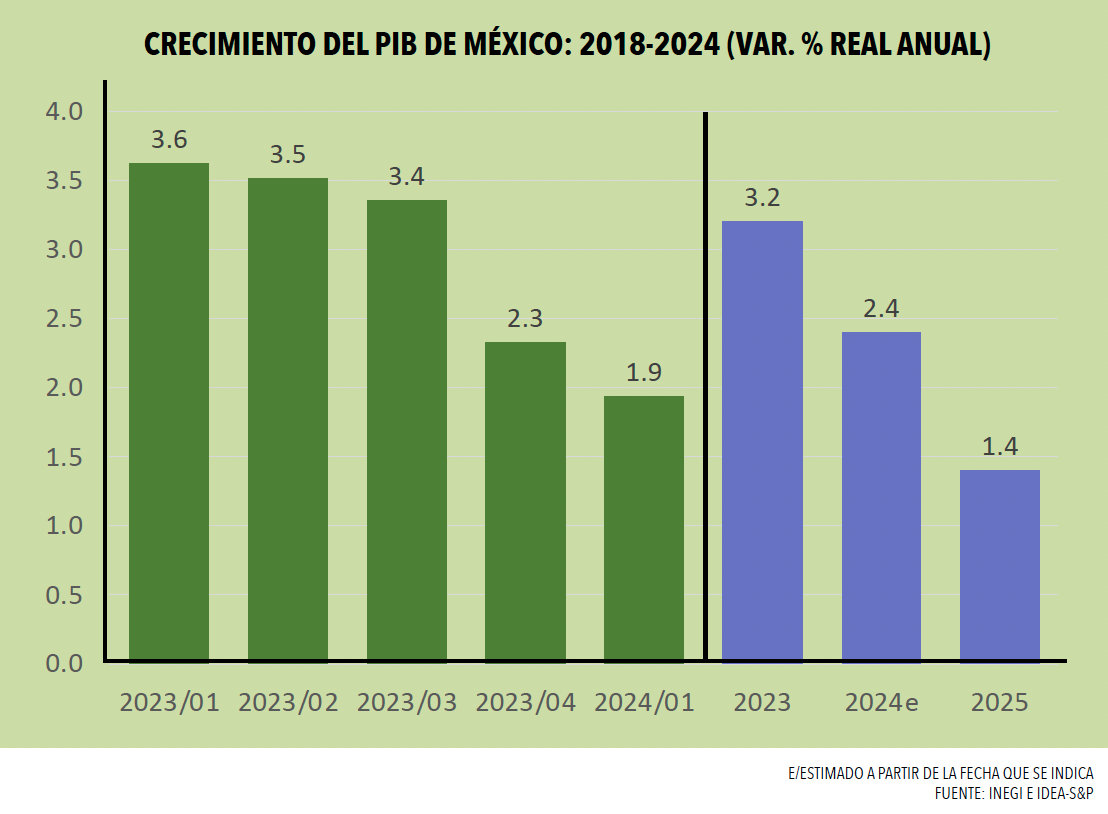En contraste a lo que sucedió en 2023, el desempeño de la economía mexicana no será igual en 2024 y 2025.