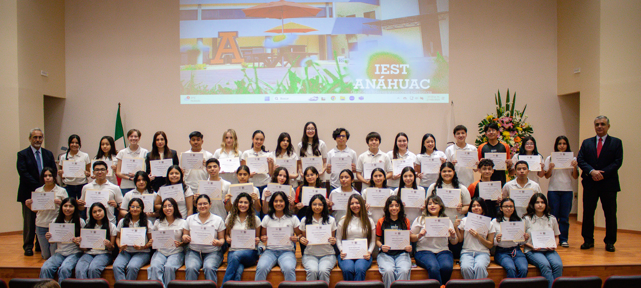 “Estamos aquí para brindar un reconocimiento a los mejores. Estamos con la élite de los estudiantes de la Prepa del IEST Anáhuac”, dijo el Mtro. Eduardo Meléndez Salgado, Vicerrector de Desarrollo y Educación Media Superior, cuando felicitó a los jóvenes que recibieron su reconocimiento por haber alcanzado la excelencia académica.