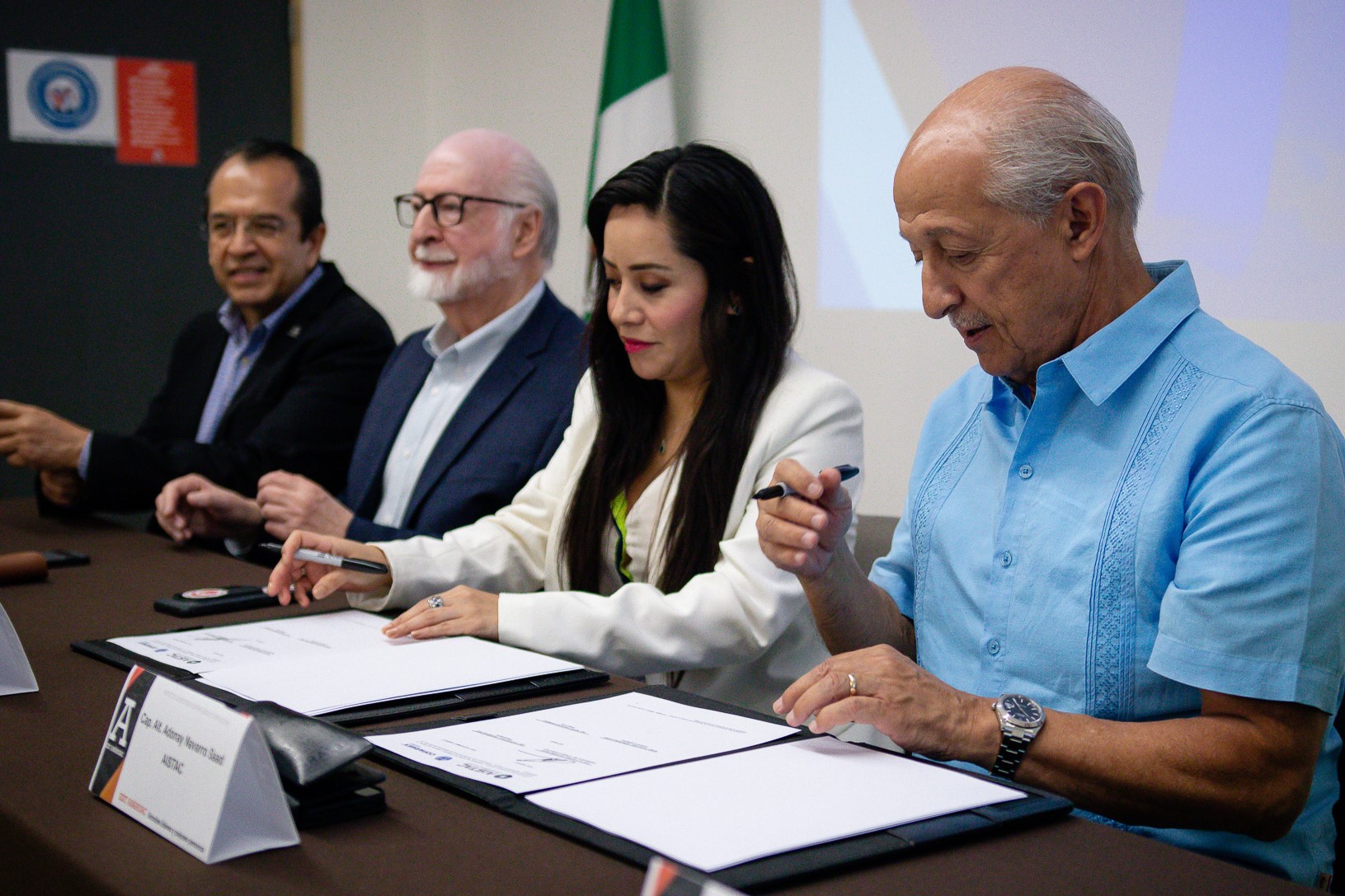 Tras las intervenciones, se procedió a la firma del convenio, con la participación de los siguientes representantes: el Capitán de Altura Adonay Navarro Saad, Presidente de AISTAC; la Arq. Ketzalli Rodríguez, Presidenta de COPARMEX Tampico; el Mtro. David Abel Hernández Gamiz, Gerente General de AISTAC; y el Ing. Pedro Granados Ramírez, Director de COPARMEX Tampico. La Lic. Gloria Laura Septién Crespo y el Lic. Felipe Pearl Zorrilla fueron testigos de honor del acuerdo.