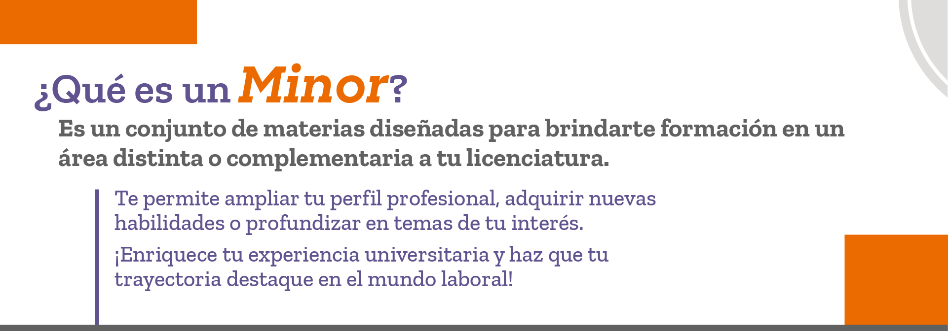 Para conocer el contenido del Minor: consulta a la Escuela o Facultad que administra el Minor de tu elección.