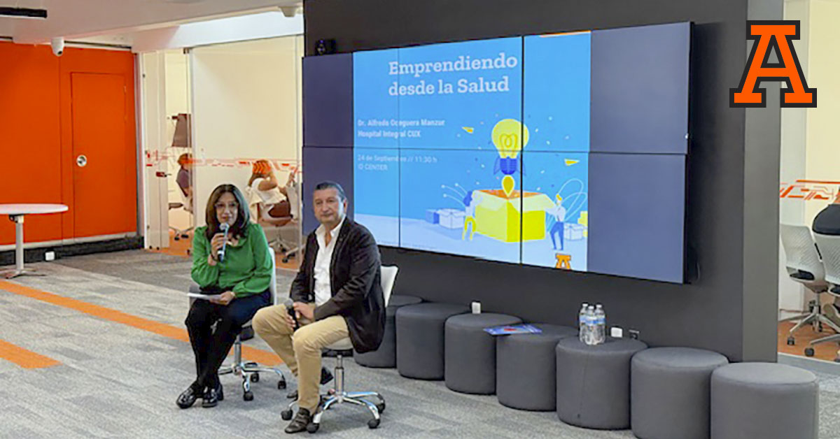 El pasado miércoles 24 de septiembre, la Universidad Anáhuac Veracruz campus Xalapa, a través del Centro de Emprendimiento Universitario, bajo la responsabilidad de la Dra. María del Carmen Mendoza Mendoza, fue sede de la conferencia Emprendiendo desde la Salud, impartida por el Dr. Alfredo Oceguera Manzur. Durante la charla, el ponente compartió con los estudiantes cómo logró transformar una necesidad en una oportunidad de negocio.