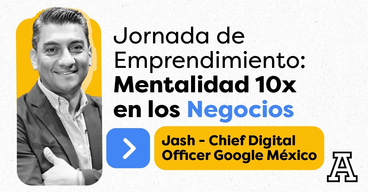 El Centro de Emprendimiento Universitario te invita a la jornada de emprendimiento impartida por Jash, Chief Digital Officer en Google México, donde podrás participar en conferencias, talleres y un panel de emprendedores exitosos.