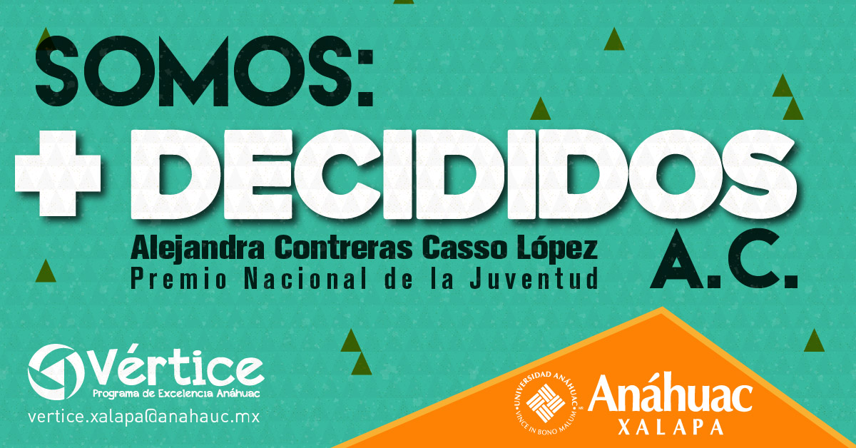 Grupo Vértice te invita a la conferencia Somos: +Decididos A.C., impartida por Alejandra Contreras Casso López, Premio Nacional de la Juventud.